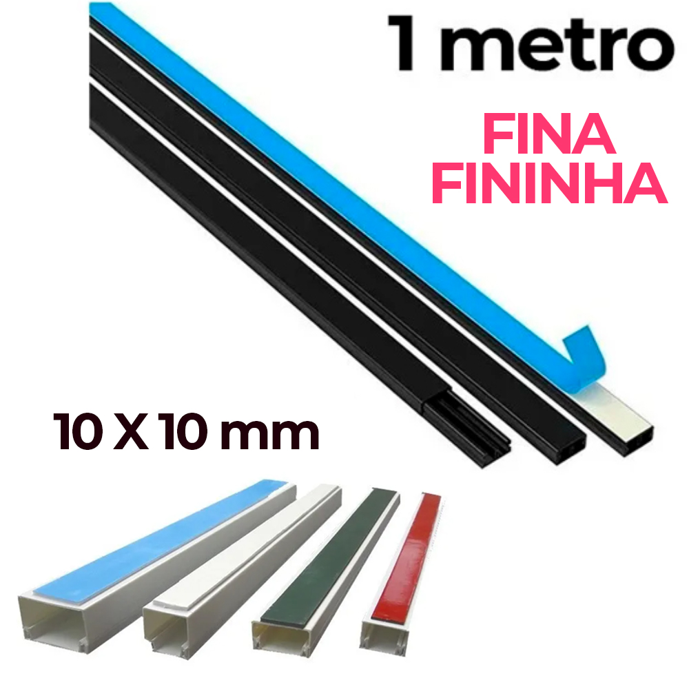 A Canaleta fina de 10×10 de qualidade, sem Divisória Com Adesivo é ideal para a passagem de fios e cabos de forma disfarçada no acabamento da parede, rodapé ou teto;